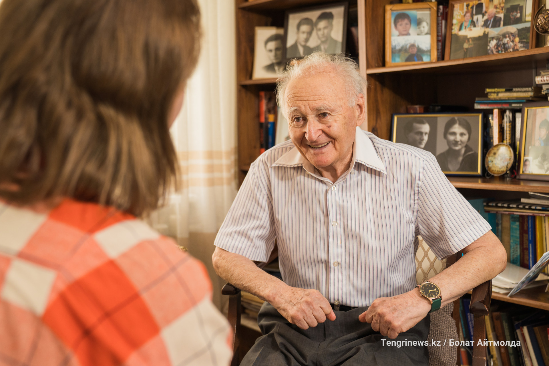 Журналист Оксана Акулова беседует с Михаилом Ефимовичем Зельцером.